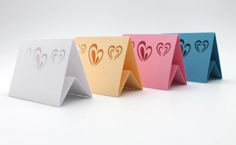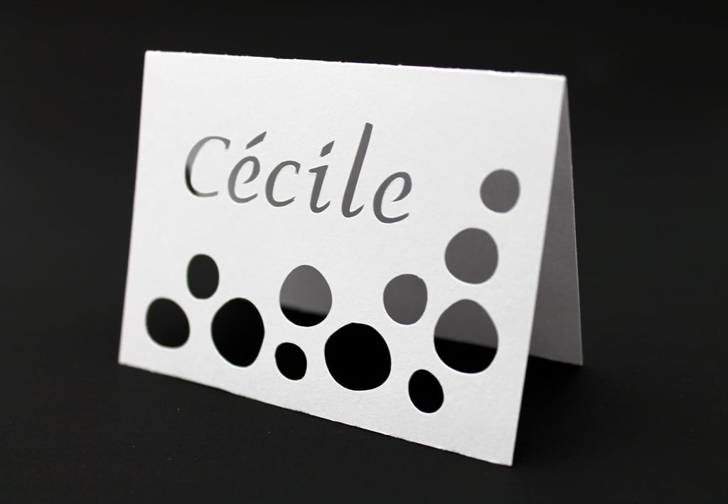 Sublimez votre table avec de jolis marque places découpés avec plusieurs options de personnalisation. S'adapte à tous types d'évènements !