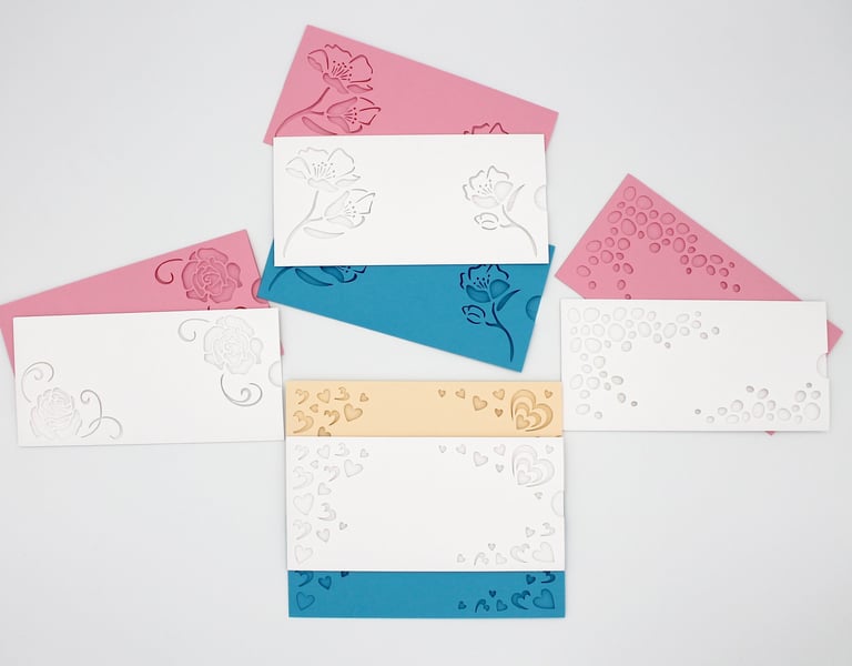 Retrouvez ici toutes les autres créations en papier découpé ! Des marque-pages, étuis à invitation ou bon cadeau, marque places et décorations diverses.